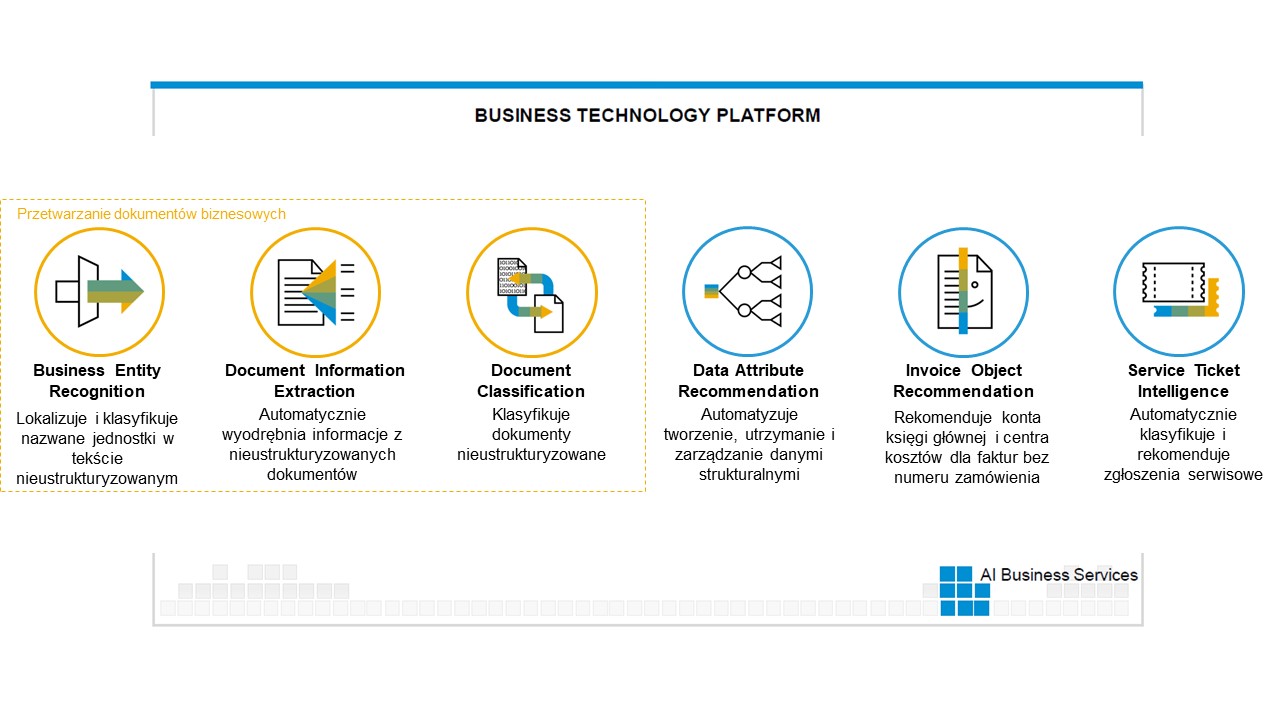 Usługi biznesowe i aplikacje oparte na Sztucznej inteligencji są dostępne również dla klientów SAP Business One i mogą być doskonałym uzupełnieniem standardowych funkcjonalności systemu. Jednym z obszarów zastosowania AI jest przetwarzanie dokumentów biznesowych. Zautomatyzowane przetwarzanie dokumentów z wykorzystaniem ich klasyfikacji (Document Classification), ekstrakcji danych (Document Information Extraction), czy rozpoznawania danych biznesowych w tekście nieustrukturyzowanym (Business Entity Recognition), pozwala pracować wydajniej, z mniejszą liczbą błędów i pomyłek.