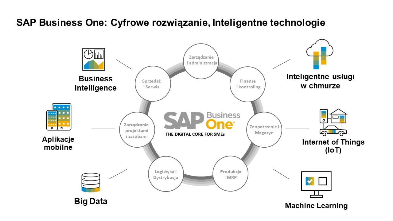 Zgodnie ze strategią budowania Inteligentnych Przedsiębiorstw, SAP już od jakiegoś czasu dąży do przybliżenia inteligentnych usług swoim klientom. SAP Business One HANA jest przykładem nowoczesnej, cyfrowej platformy, w której poza standardowymi funkcjonalnościami ERP, osadzone są inteligentne mechanizmy i algorytmy, oparte m.in. o Machine Learning, Big Data czy Business Intelligence. System jest systematycznie wzbogacany o kolejne, zaawansowane rozwiązania. Obecnie głównym nurtem rozwoju systemu są trzy kluczowe obszary: